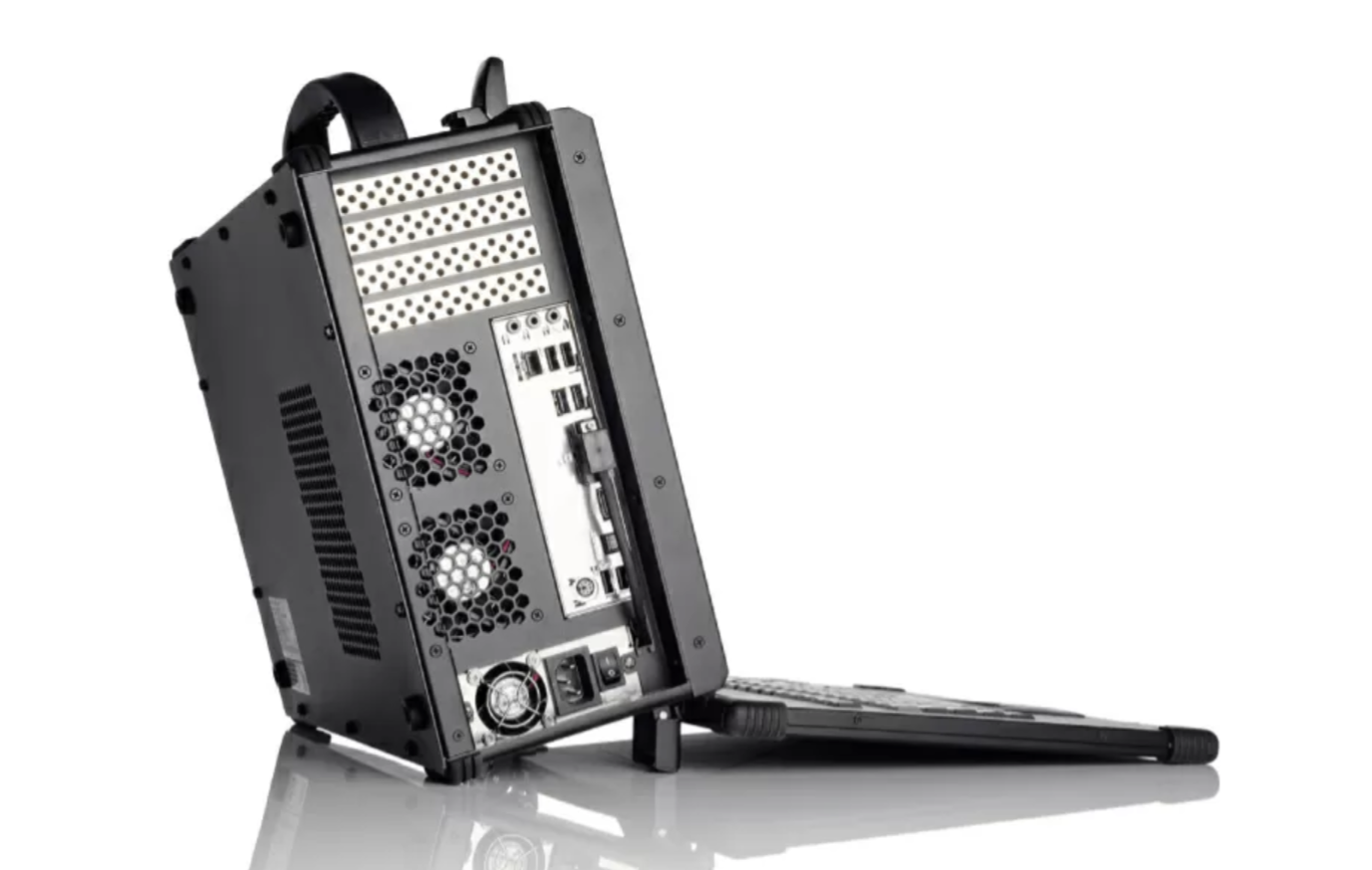 a-XP采用一个微型ATX机箱,顶部有一个手柄,用螺栓固定在笨重的笔记本电脑后面。虽然这款产品不会赢得任何美貌竞赛,但它很可能为现场工作的工人节省大量时间,因为现场工作需要大量的计算能力。Mediaworkstations.net是这款便携式工作站背后的公司,它的目标客户是需要强大性能的移动PC创意和技术专业人士,他们需要高性能,处理涉及媒体制作、视觉效果、VR/AR、科学研究和CAD应用的苛刻日常工作。