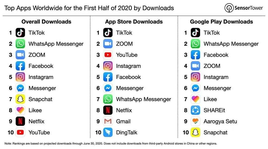 2020年第一季度,TikTok全球下载量达3.15亿次,而同类社交应用程序Facebook下载量为1.86亿次,Instagram为1.52亿。包括Facebook在内的许多美国本土公司都曾尝试开发过类似TikTok的应用,皆铩羽而归。