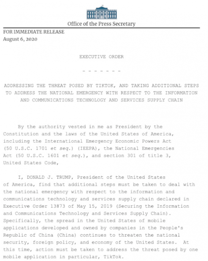 但仔细看这条行政命令,它所传达的内容对具体交易范围含糊其辞——既没有明确表示要“下架微信”,也没有公开“不得交易”的范围。