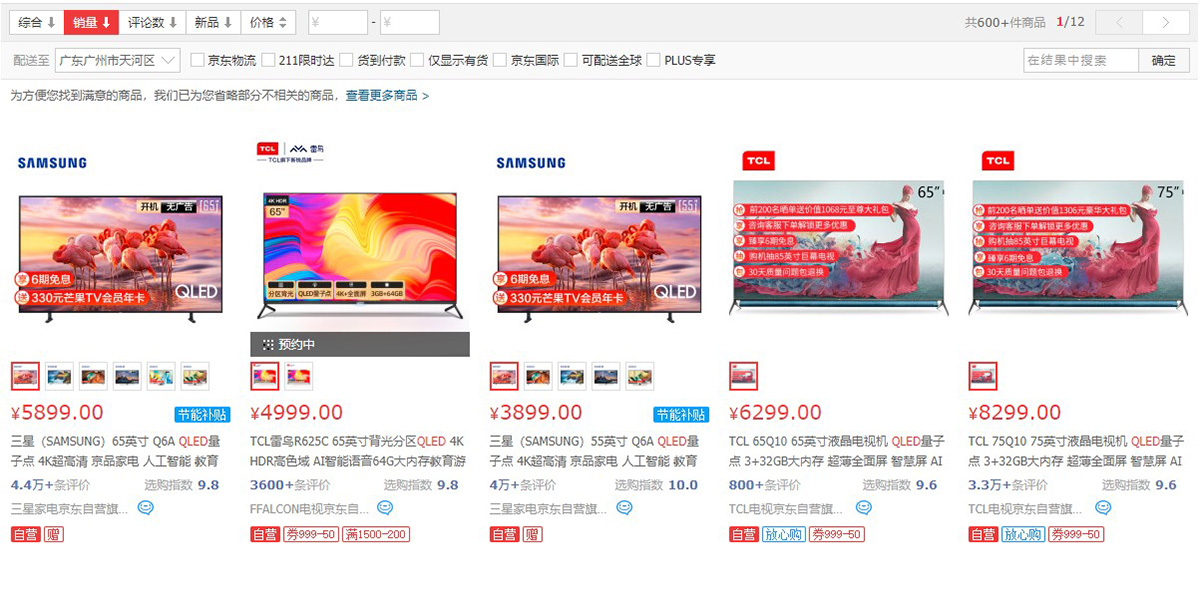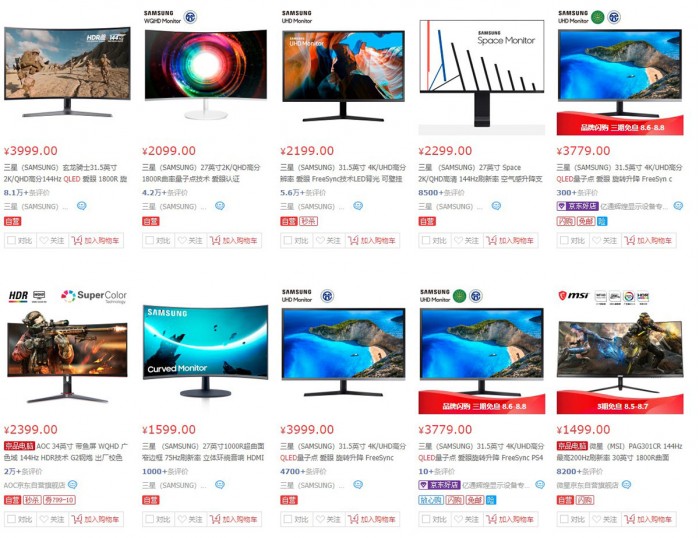 到京东去搜一下QLED,首先出来的结果是QLED电视,这也没什么意外,毕竟量子点电视这几年的确是挺火,也挺受欢迎的。不过如果搜QLED显示器的话,会发现除了有一两款是比较卖得好的之外,其他的都是嗯,比较冷门的。