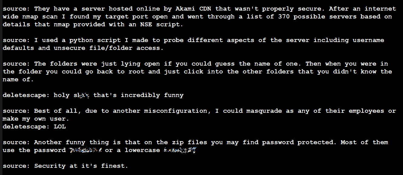 这个匿名泄露来源还表示,未来还将泄露更重大、秘密级别更高的信息。黑客还透露,他在一个欠保护的CDN上找到了一个Intel服务器,并通过Python脚本扫描了许多文件,要么是没有密码,要么是用了默认密码。而且被攻破的软件还包含多个后门。
