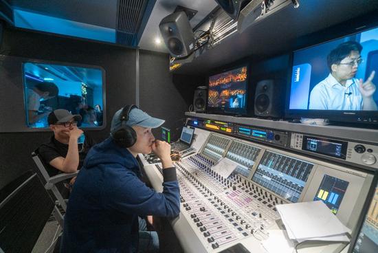 在距离演出大厅不远有一台14米长的直播车,8K+5G信号收录及制作就是在这里完成。相比2019年国家大剧院用8K+5G技术录制全景声歌剧电影《这里的黎明静悄悄》,本次直播所面临的技术问题则更加复杂。