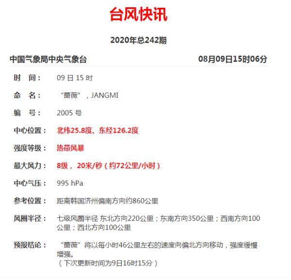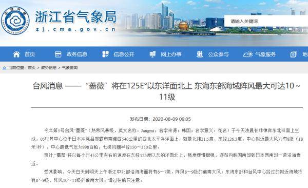 浙江省气象局官网今天9点05分发布台风消息称: