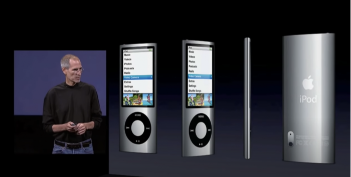 口袋摄像机的流行让传统相机厂商也极为眼馋,柯达、索尼纷纷推出类似产品,就连乔布斯也在 iPod nano 5 的发布会上专门提及 Flip Video、YouTube,为其引入了摄像头,这倒也符合 iPod 系列便携、便宜的定位。