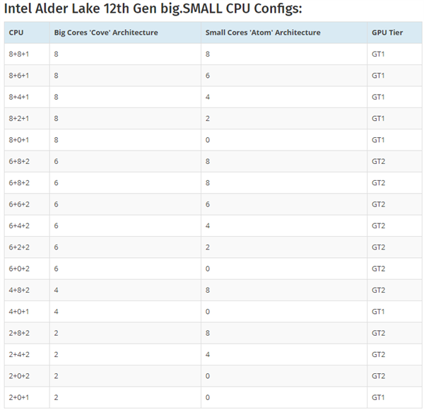 除了DDR5内存,Alder Lake自身的看点还包括大小核混合架构设计,预计大核是Golden Cove、小核是Gracemont,组合有十几种SKU,最高8+8+1,也就是16核CPU配GT1核显,热设计功耗125瓦,最低是两大核。