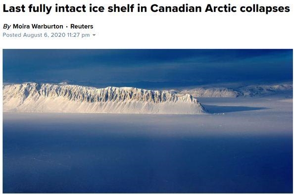 加拿大北极地区冰架坍塌无疑是全球变暖的又一个信号。