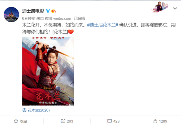 等待无果,迪士尼正式宣布放弃《花木兰》在部分国家的院线上映计划,在部分国家改为线上放映。