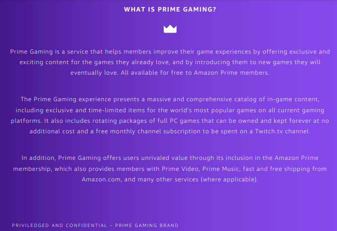 "在四年之后,Twitch Prime将改名为Prime Gaming,以便让Prime Gaming会员更清楚地发现他们的会员资格所提供的所有游戏福利,包括世界上玩得最多的游戏的必备内容,以及免费的月度订阅,以帮助你从全球数百万亚马逊Prime会员中发展你的观众。那么,这对你来说意味着什么?这意味着你有更多的机会从亚马逊Prime会员群体中增长你的观众群,并有机会在未来的Prime Gaming推广活动中出现。"