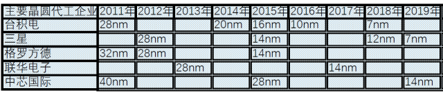 在2019年的时候中芯国际才推出14nm工艺,但此时业界顶级工艺已经开始向7nm工艺过渡。
