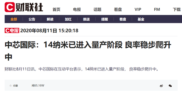 8月11日,据财联社消息,中芯国际在互动平台表示,14nm已进入量产阶段, 良率稳步爬升中。此前,中芯国际曾为华为代工14nm麒麟710A处理器,目前该处理器已经用在荣耀Play 4T手机、华为畅享平板2上。