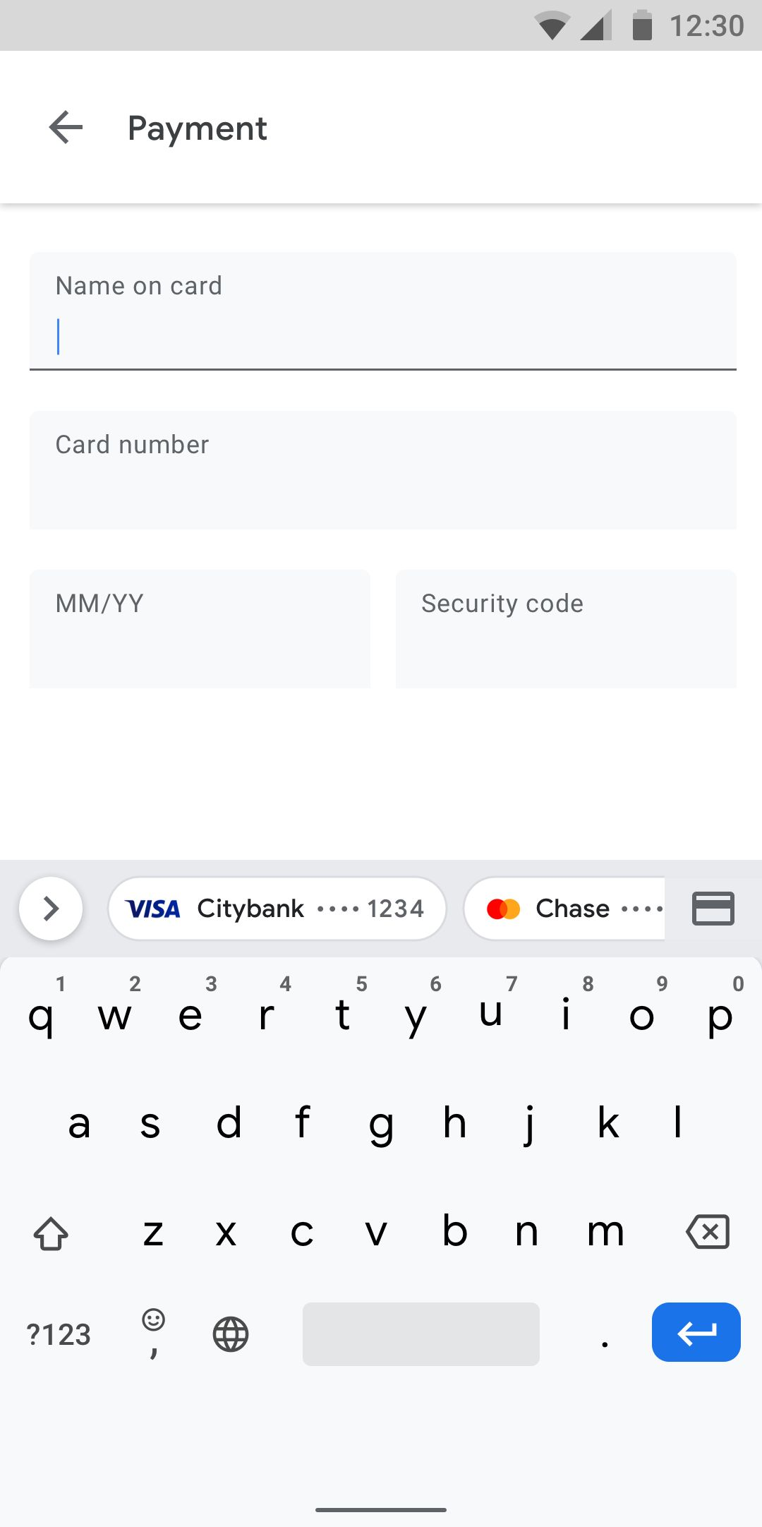 相比之下,iOS早就解决了这个问题,让自动填写建议就出现在键盘上方。这最大限度地减少了手指从键盘区域移出的距离。Android终于会在下一个版本11当中采用这一惯例,让用户更快、更方便地快速完成登录和支付表单。