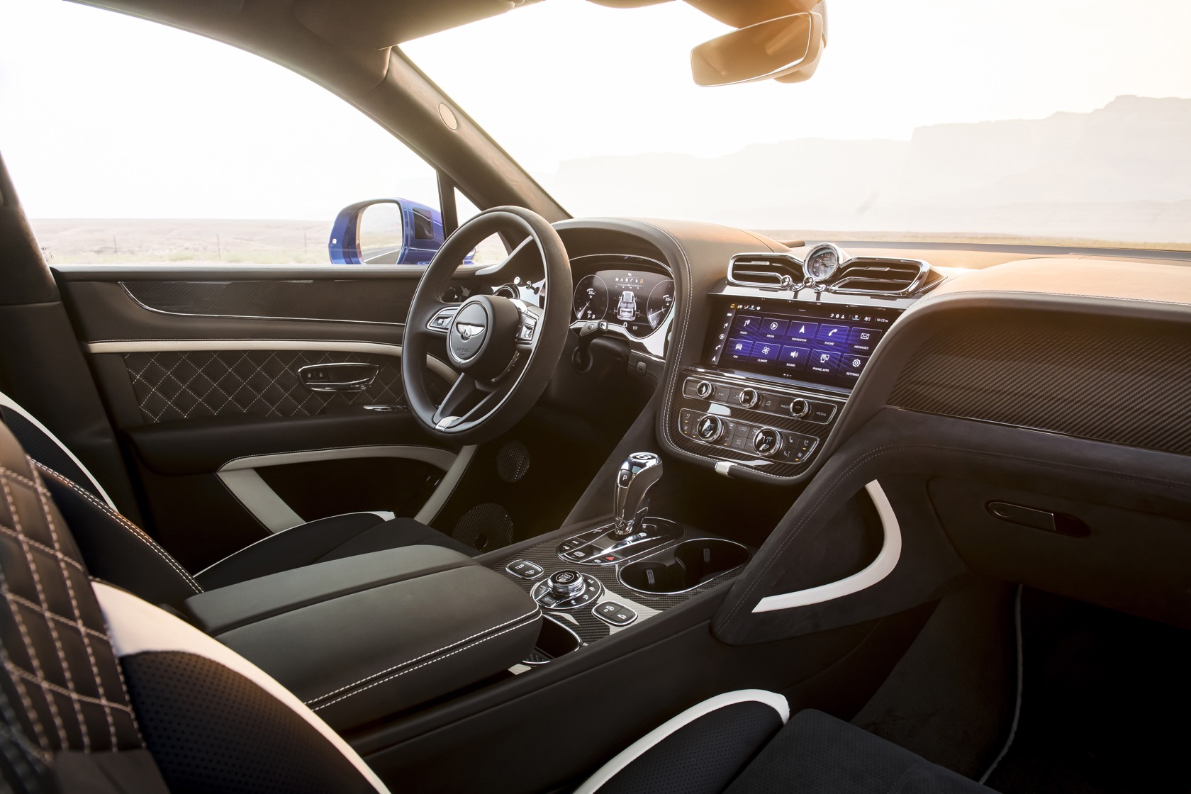 新添越极速版车型标配“Mulliner驾驶套件”,其中包含全新对比色缝线打造的菱形绗缝图案,其中一条缝线与真皮内饰颜色相称,另一条缝线与其形成鲜明对比。该车型的前排仪表板饰有“Speed”金属徽标,带有照明功能的车门踏板上亦装点有“Speed”专属字样,尽显奢华。
