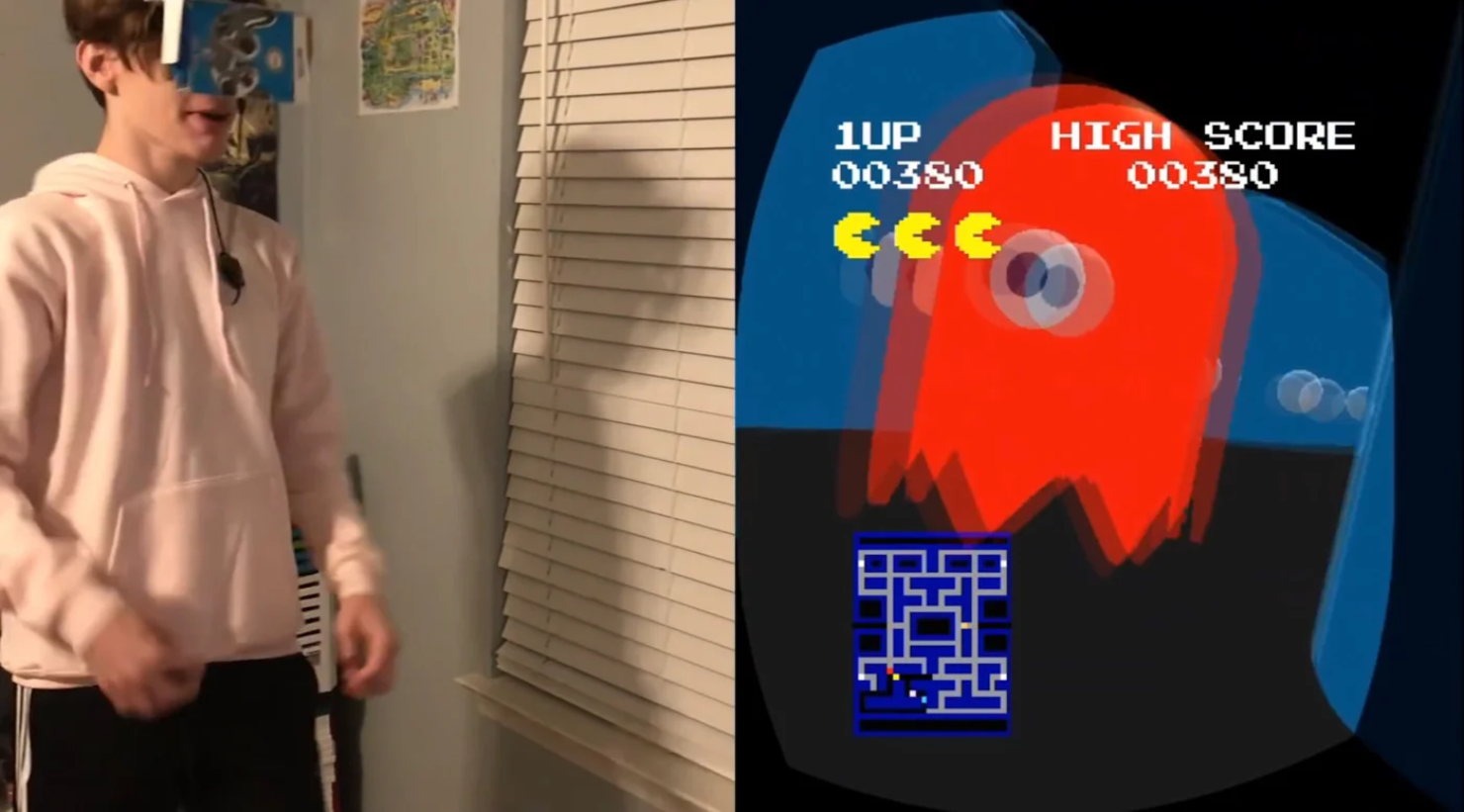 这两个游戏都是在Unity中开发的。第一款游戏,粗糙的第一人称射击,使用手柄的陀螺仪和加速计转身、使用右侧触发器向游戏中四四块的敌人射击。吃豆人VR游戏则更加独特:吃豆人朝着玩家想要的方向移动,而不用手操作。