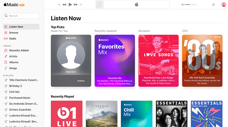 苹果本周重新推出了Apple Music网络播放器的“beta版”,并进行了一些调整,使该服务与相应的应用版本保持一致,这些应用版本将作为iOS 14和macOS Big Sur的一部分亮相。更新后的beta版包含了一个名为 “Listen Now”(立即收听)的新内容导航部分,它取代了目前在面向公众的Apple Music网页播放器上看到的 “For You”标签。