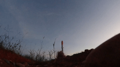 在发射场景中,这枚自制火箭,被放置在野外的空地上,倒计时“3、2、1”结束后,火箭被成功点火发射。发射瞬间,火箭尾部喷出强大的气体,将地面掀起一阵浓烟,火箭拖着常常的尾巴冲上云霄。