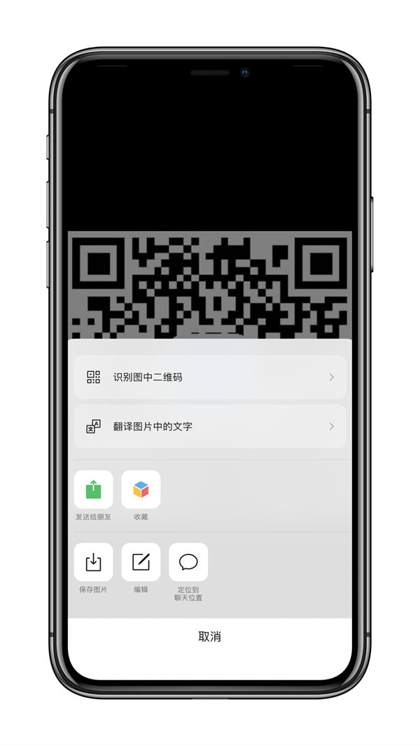 3、聊天对话框中的图片操作页面刷新,若是二维码的话,识别按钮被移到了上方。