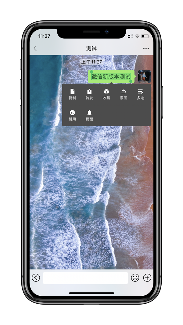 2、微信对话框中聊天气泡菜单改为长方形,可以显示全部操作选项,更一目了然。