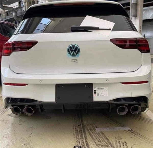 全新高R尾部保险杠下方配备了黑色扩散器和双边共四出的排气布局,刹车卡钳带有蓝色涂装。此外,代表大众性能车的“R”标也被放置于“VW”标识下方。