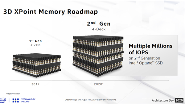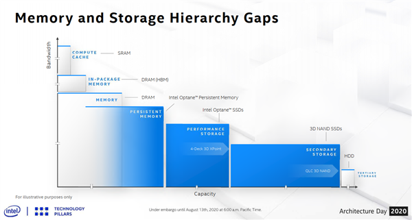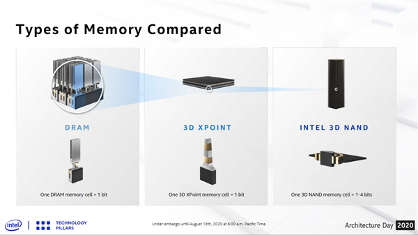今天晚上,Intel围绕2年前提出的六大技术支柱战略举行了2020年的架构日活动,已经公布了10nm SuperFin先进工艺、Tiger Lake处理器、Xe GPU架构及二代混合x86处理器Alder Lake。存储也是Intel六大技术支柱中的重要一部分,今天官方也公布了最新的闪存及傲腾内存路线图,简单来看下吧。