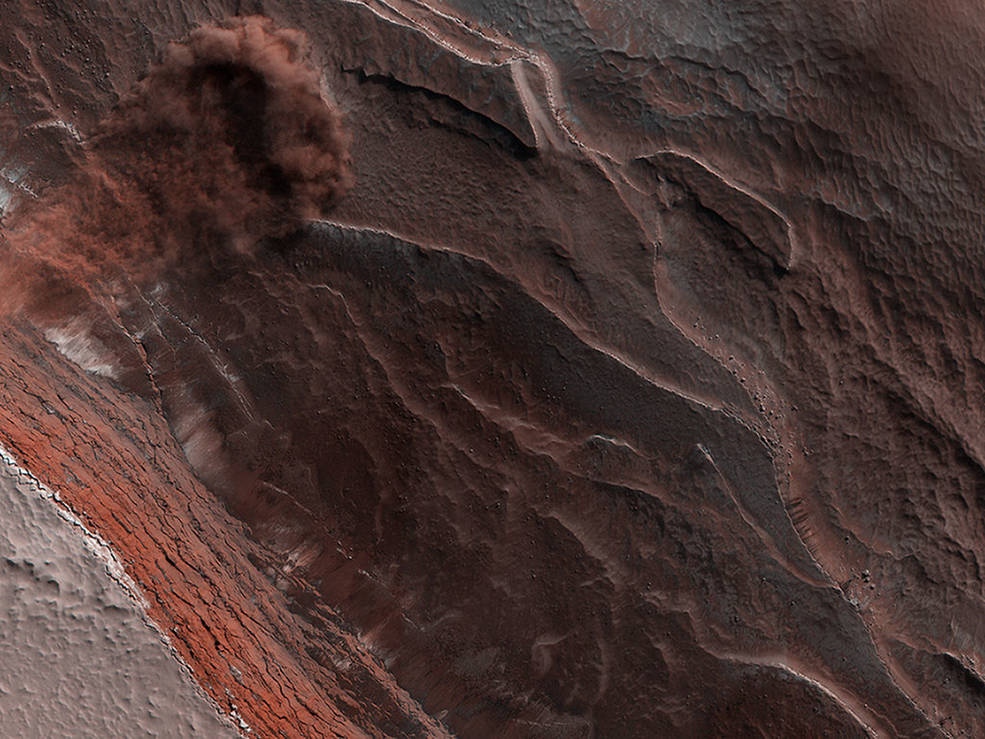 MRO的一些图像出现了明显的非火星色彩,这要归功于使用了一种帮助某些细节突出的图像处理技术。