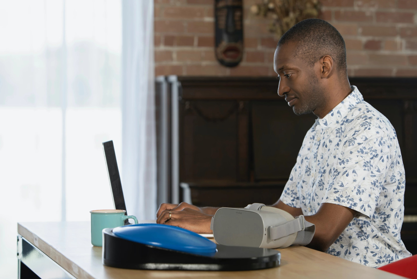 鉴于第一人称视角(FPV)虚拟现实系统会让一些人晕眩,用户可以在第一人称视角和第三人称视角模式之间切换。他们也可以根本不使用VR头盔,而是在电脑屏幕上观看虚拟环境的2D显示。如果他们感到孤独则还可以跟其他来自不同地方的Blync用户一起参加在线“组团骑行”。