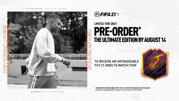 在《FIFA 22》发行前获得 PlayStation 4 或 Xbox One 版《FIFA 21》的授权,并免费将游戏升级至新一代主机(Xbox Series X 或 PlayStation 5)上的相同版本。