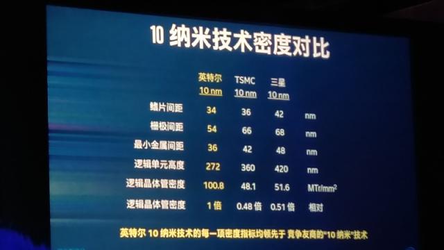 但是,如果以晶体管密度为标准的话,英特尔三年前推出的14nm制程所能达到的晶体管密度已经与三年后台积电、三星所推出的10nm的晶体管密度相当,而英特尔的10nm工艺虽然比台积电、三星要晚,但是它的晶体管密度却达到他们的两倍,并且在鳍片间距、栅极间距、最小金属间距、逻辑单元高度等指标均领先于台积电和三星的10nm。同样,英特尔的7nm工艺的晶体管密度等指标方面,实际上也要优于台积电和三星的5nm工艺。
