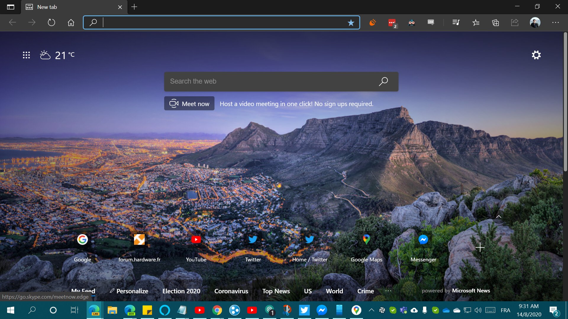"立即见面"是Edge浏览器新标签页中的另一个有用的功能。按钮位于搜索栏的正下方,本质上是一个Skype快捷方式,点击它将可以开始主持会议或立即加入Skype对话。对于那些在Skype上主持会议并使用Edge作为默认互联网浏览器的人来说,这将相当方便。不过遗憾的是,用户无法关闭这个功能。