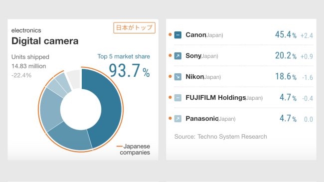 2018年全球数码相机品牌TOP5: