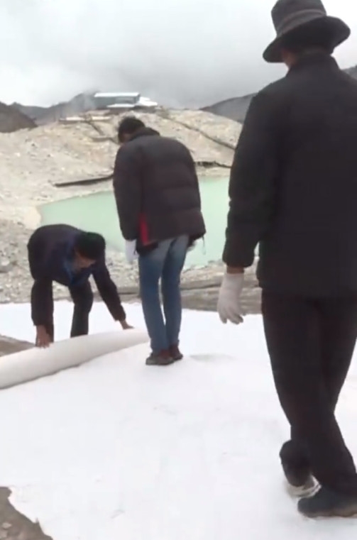 随着全球气候变暖,冰川消融加速,为了保护冰川,中科院冰冻圈实验室在四川开展盖被子试验,在国内尚属首次。