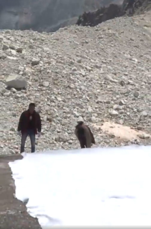 8月5日,一个20人的小分队登上17号冰川,在海拔约5000米的地方,搭建了一个面积500平方米的试验场,在冰面上铺了一层厚度5毫米或8毫米不等的土工布,犹如给冰川盖上了一层被子。
