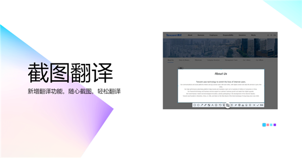 日前,腾讯正式发布了QQ PC版v9.3.7,增加多项新功能,办公聊天更方便了。QQ PC版9.3.7加入了截图翻译功能,遇到整个英文页面,只需截个屏,使用翻译功能,即可将英文翻译成中文,再也不怕看不懂英文文章了。