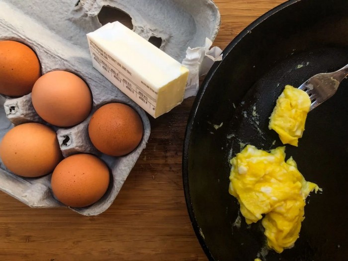 在尝试并品尝了 10 种不同的烹饪方式之后,Askinasi 建议不要在鸡蛋加入牛奶或者用中火烹饪。牛奶只是让事情变得湿润和没有味道,而中火在几秒钟内就把鸡蛋完全烤干了。
