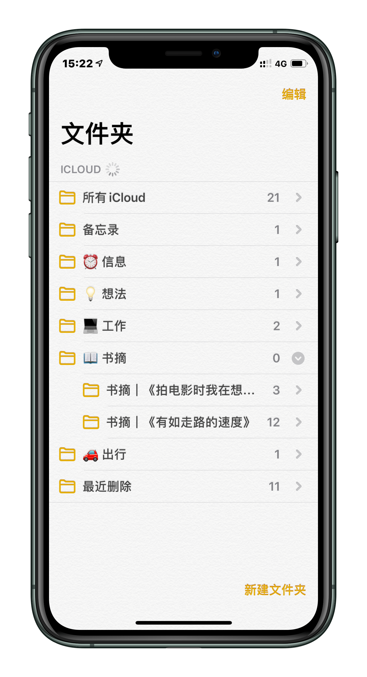 此外,备忘录还支持创建文件夹和子文件夹,通过手动对不同类型或者不同主题的备忘录进行分类,可以确保备忘录保持井然有序: