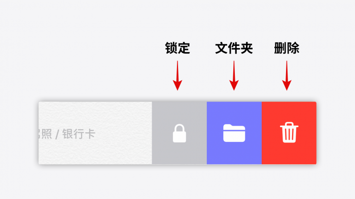 而对于一些需要加密的内容,苹果原生的备忘录应用也提供了“锁定”功能,同样选择需要加密的备忘录,向右滑动该条目,选择灰色锁定图标,完成密码或者 FaceID / TouchID 设置。