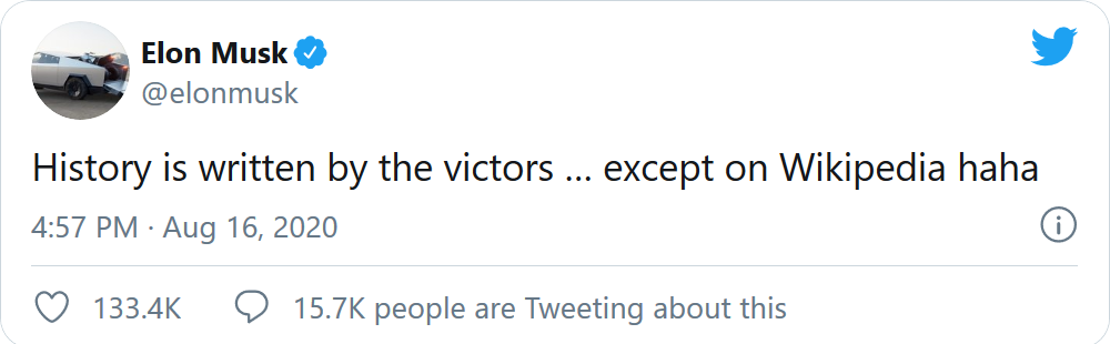 至于马斯克和维基百科的问题是如何在2020年再次开始的我们不得而知,但在关注他的推文后可以看到这位科技亿万富翁再次开始批评这个平台。