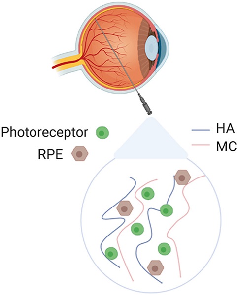 研究作者 Molly Shoichet 教授表示:“视网膜色素上皮细胞和感光器组成了一套功能单元,如果一种细胞凋零、另一种也无法独活。基于此,我们想知道二合一的靶向注入对视力恢复有多大的效果”。