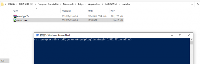 2、进入对应当前Edge版本号的文件夹,并进入“Installer”文件夹内找到setup.exe。
