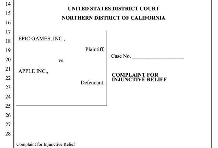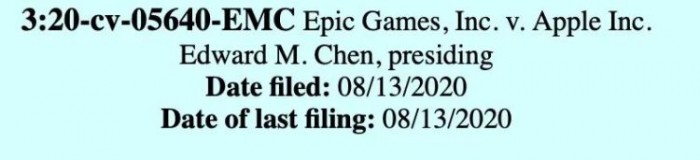 紧接着,在 Fortnite iOS 下架的一个小时内,Epic Games 向美国加州北区地方法院正式提交了针对苹果的民事垄断诉讼,案件编号 3:20-cv-05640.