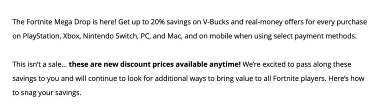 美国时间8月13日上午,Epic Games 更新了《堡垒之夜》(以下简称 Fortnite)的 iOS 和 Android 移动游戏客户端,并且上线了一个力度颇大的促销活动,在桌面、移动和主机全平台上现金充值八折。
