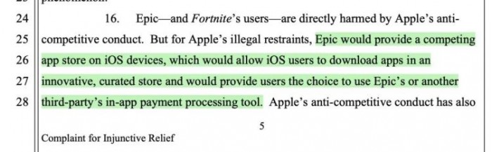 “我公司可以在 iOS 设备上提供一个有竞争力的应用商城,让 iOS 用户可以在一个创新的、人工筛选过的商城里下载应用,并使用我公司或其他第三方提供的应用内付款方式。”