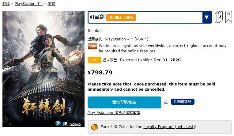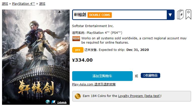由大宇资讯打造的《轩辕剑7》,其PS4实体版现已在Play-Asia官网开启预购,其标准版定价334元,限定版定价798.79元。