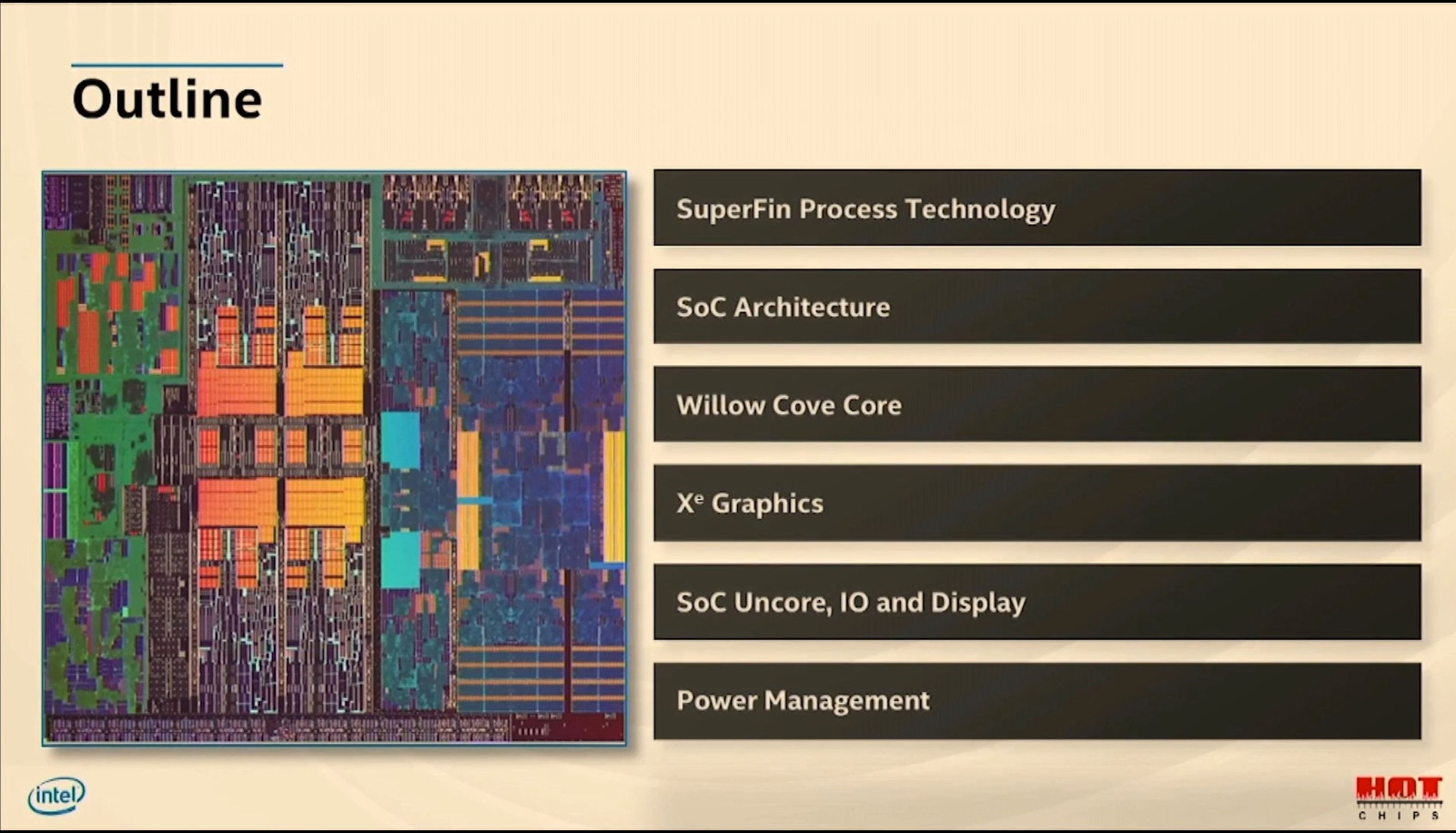 日前的2020年度架构日上,Intel首次公开介绍了下一代低功耗移动酷睿平台Tiger Lake的详细架构设计,以及所用的10nm SuperFin新工艺,可以理解为10nm++版本。HotChips 2020半导体大会上,Intel又一次公开讲解了Tiger Lake的架构设计,并第一次亮出了Tiger Lake的晶圆: