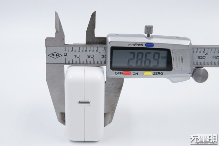 使用游标卡尺测得充电器的厚度约为28.69mm。