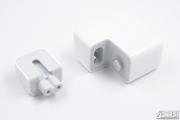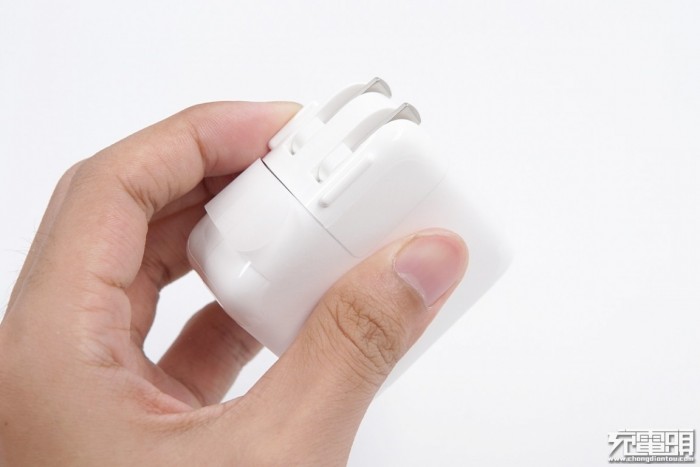 充电器外壳与旧款一样,仍然为两瓣式。AC插脚为可折叠设计,方便携带,减少刮蹭。