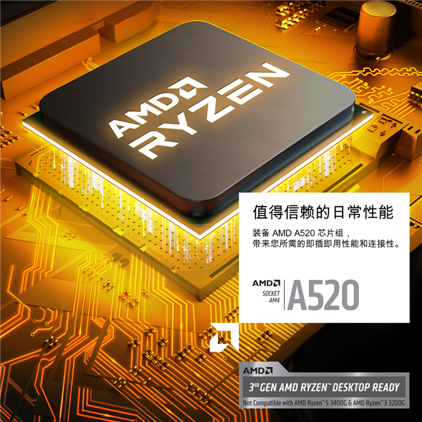 处理器支持方面,虽然AMD官方称A520仅支持三代锐龙家族,但既然都是AM4接口,主要就看主板具体设置了,而且官方也明确会支持即将发布的Zen 3架构下一代锐龙。