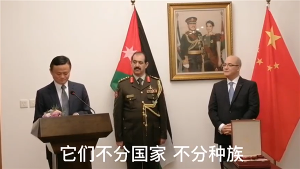 由于在疫情期间捐赠医疗器械和物资,马云前不久获得了约旦全国最高荣誉勋章——阿卜杜拉二世·本·侯赛因国王一级卓越勋章。今天约旦驻华使馆向马云授予勋章,马云表示人类必须学会真正的合作。
