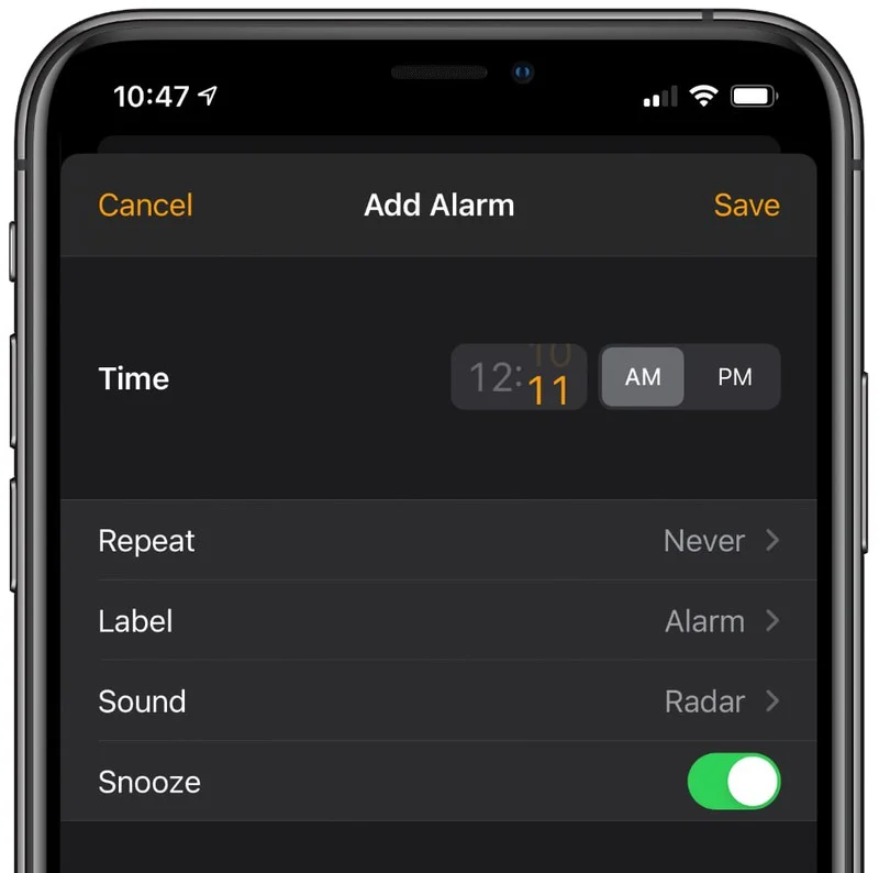 在时钟应用中设置闹钟时,现在你可以用手指在时钟轮中滑动来设置时间,而不是必须输入时间。