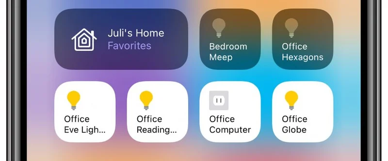 控制中心中的 HomeKit 设备现在具有更小的磁贴和更智能的组织,只需轻点即可访问更多快捷方式。