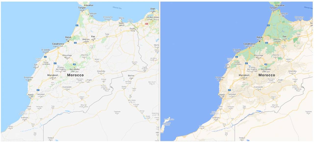 不过,这不仅仅是“绿色代表森林”,“蓝色代表水”。谷歌的算法还考虑到了不同自然特征的密度,因此林地的区域可以根据树木的成熟度和茂密程度呈现出不同的绿色。相反,那些直到现在都会因为被归类为国家公园而完全是绿色的区域,可以被重新着色,以显示哪些区域实际更像沙漠地形。该公司正在将该算法应用于其地图支持的220个国家和地区。